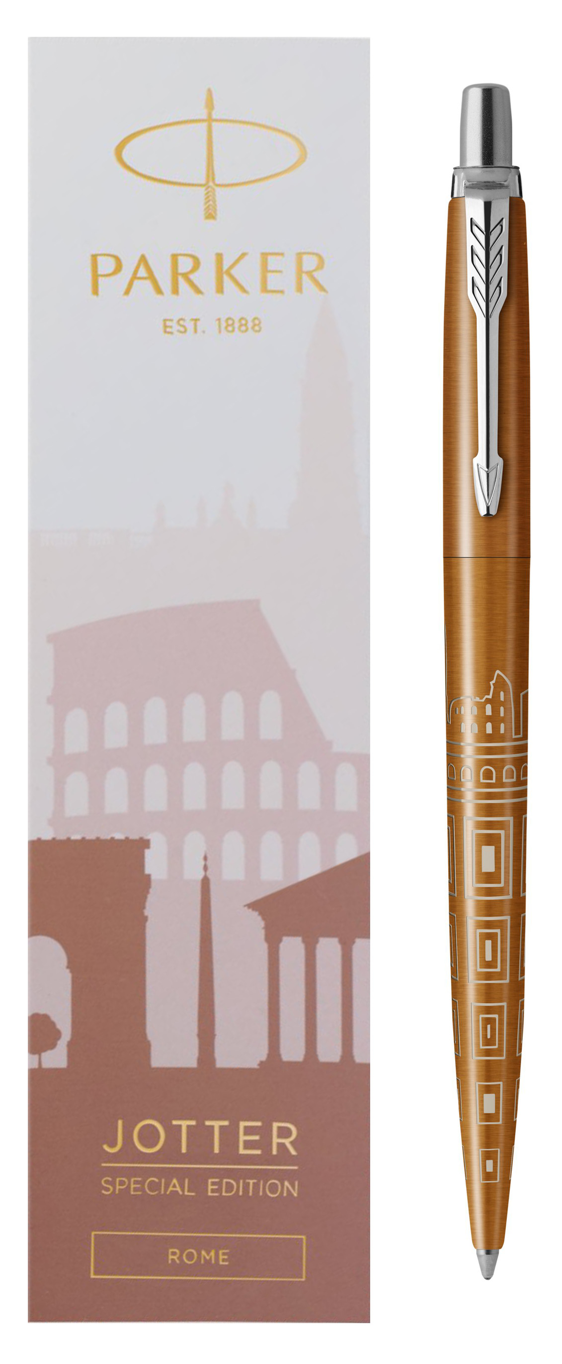 Ручка шариковая Parker Jotter Rome Bronze CT от официального дилера Parker в Чебоксарах. Вы можете дополнительно заказать гравировку, которая подчеркнет Вашу оригинальность и придаст памятность статусному подарку. Все ручки Паркер поставляются в фирменном футляре.