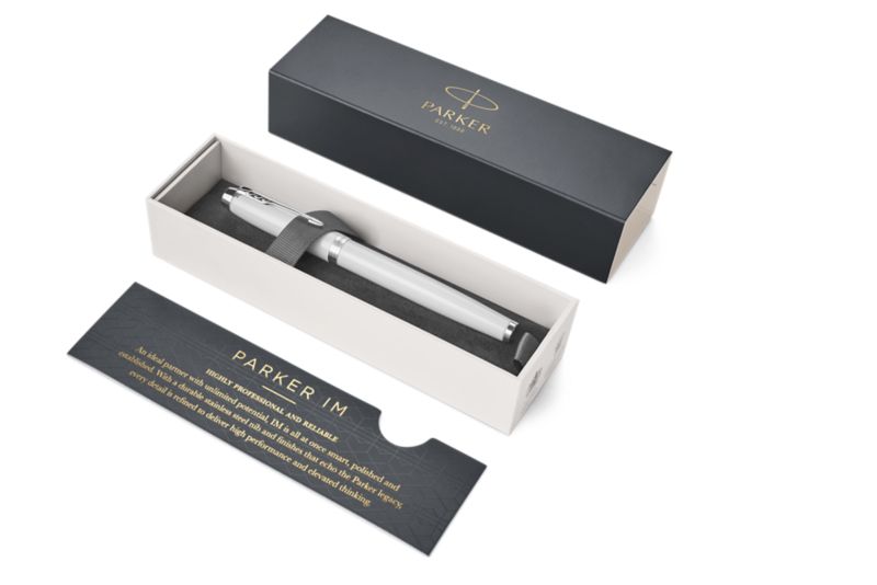 Ручка роллер Parker IM Metal White CT от официального дилера Parker в Чебоксарах. Вы можете дополнительно заказать гравировку, которая подчеркнет Вашу оригинальность и придаст памятность статусному подарку. Все ручки Паркер поставляются в фирменном футляре.